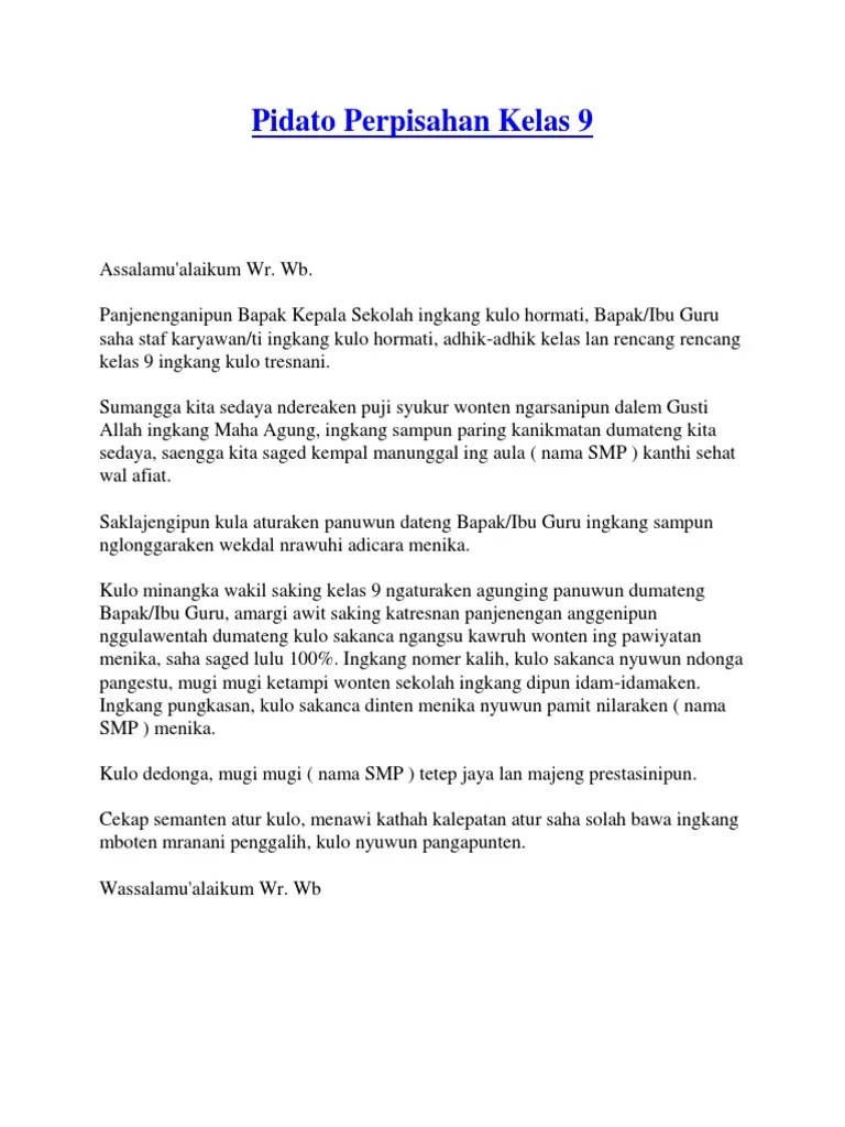 Naskah pidato perpisahan kelas 9 assalamualaikum warahmatullahi wabarakatuh.